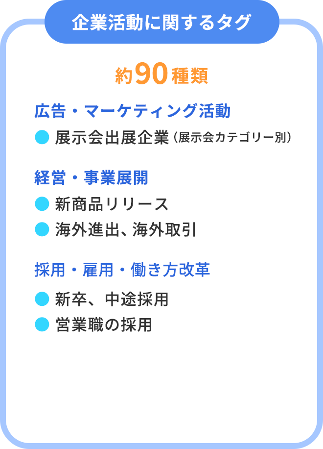 ※企業のWEBサイトや公開情報をもとに情報を収集、分析、タグ化したもの